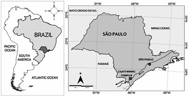 The Mining Chemical Complex of Cajati (CMC) is at 230 km from the city of São Paulo, following the federal road BR-116 in the direction of Curitiba, Paraná (Figure 1).