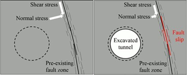 Studying a tunnel excavation, Wu, Zhao and Duan (2017) have perceived the occurrence of induced seismicity as consequence of the hard rock stress redistribution in the vicinity of the construction.