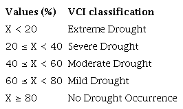 Regarding the landscape management, the VCI is an easily accessible tool for monitoring drought events due to its ability to demonstrate the best and worst drought conditions over a period. Through the analysis of the time series, the VCI investigate the seasonal drought variations and identify disaster situations, such as the cases related to water supply volume for populations (Baniya et al. 2019; Yulistya, Wibowo & Kusratmoko 2019).