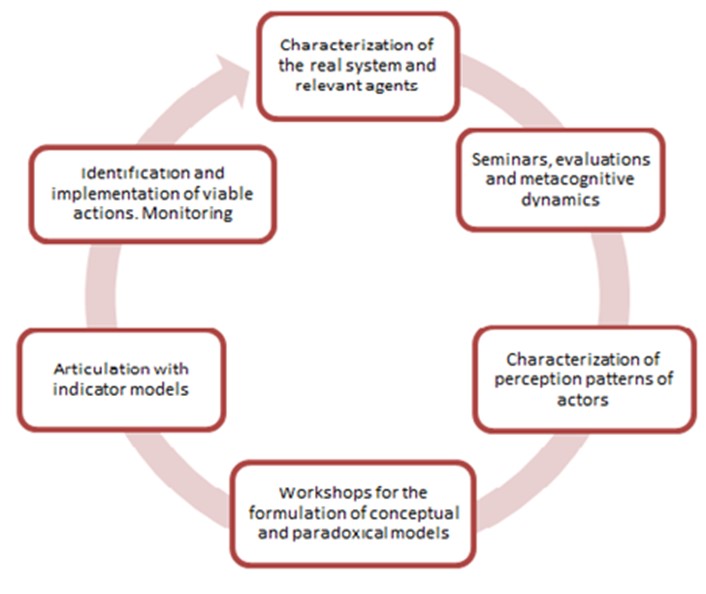 Phase 2 from de CHAP² model consisted of seminars, evaluations and metacognitive dynamics considering that it is important for the facilitators (those who are working with the method) to express the principle of holographic representation in the conduct of the work with the focus group. The presentation of the method for the agents interviewed in phases 1 and 3 was done in person, as well as the validation of the maps with the agents, where it was possible to identify corrections to be applied.