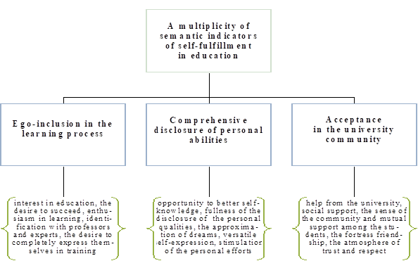 When we consider the phenomenon and the process of students' self-fulfillment in university environment, it is necessary to clearly realize that we are dealing with the most reliable indicator of successful personal and professional development (Shutenko et al., 2019a), and at the same time with a humanitarian criterion of the productivity and effectiveness of university educational process as a whole (Tomlinson, 1993). In designing of our research, we assumed that the process of students' self-fulfillment is determined by such educational practice construction that promotes the full personal and socio-cultural development of student as a capable and competent subject (Gasset, 1999).
