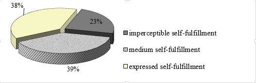 It should be emphasized that the first group was the smallest, which indicates that, on the whole, there is a positive tendency toward self-fulfillment of students in the course of their academic studies. In general, students of a high self-fulfillment express a greater belief that they have made the right decision in choosing a university and can realize their potential to achieve significant advantages. They learning with evident interest and suppose that the studies at the university is the most useful and valuable activity, that cannot be seen as a formal commitment or just as a meeting place with friends. Students with high self-fulfillment are more actively participate in the training process, they believe in learning as the most important activity that brings their dreams closer, arouses a surge of inspiration and internal improvement. In university classes, they recognize an inexhaustible resource for a diverse and deep expression of themselves as a personality.