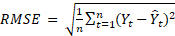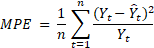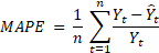 [Ecuación 6]En las ecuaciones 2 a 6, Yt representa el valor real total del período t, Ŷt el valor pronosticado en el período t y n la cantidad de valores de la serie temporal.