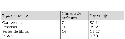 En respuesta a la PI2, los artículos se han publicado principalmente en actas de congresos con un 52.11 %, seguidos de artículos en revistas y series de libros con un 35.21 % y un 11.27 %, respectivamente. Tal como se muestra en la Tabla 1.