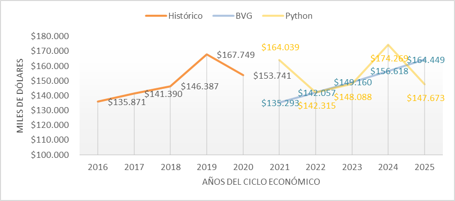 Bajo la premisa de que las empresas buscan financiar capital de trabajo o sus operaciones en el corto plazo, el modelado inicia con un modelo econométrico, Los inputs de este modelo económico consisten en variables que correlacionan directamente los precios promedios del camarón ecuatoriano de exportación (PPCE) y que arrojan predicciones validadas por su menor error cuadrático (Mojjada et al., 2020). Estos valores resultantes serán asociados con las ventas de la empresa, siendo ajustados a una función no lineal como ilustra la propia tendencia histórica de ingresos declarados en sus estados de resultados en la bolsa de valores, con lo cual finalizará el modelado. Estos resultados difieren de la expectativa obtenida por la calificadora de riesgos dentro del mismo periodo de tiempo para futuros periodos (Tenorio-Vilaña & Mideros-Mora, 2022).
