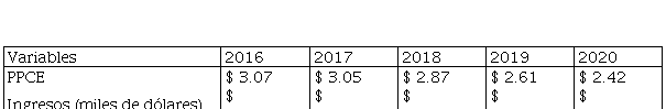 Se conjugan valores históricos anuales de los PPCE (CNA, 2022) e ingresos históricos de la empresa expresados entre los mismos periodos en su primera emisión de obligaciones (Global Ratings, 2021b).