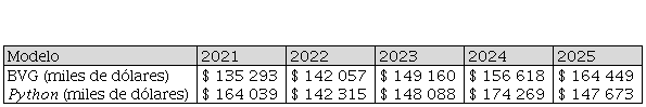 Empleando los resultados de la codificación del modelo y las proyecciones declaradas por parte de la calificadora de riesgos se elabora la tabla resumen (Tabla 7) para un horizonte de tiempo de cinco años, así como datos de origen para el análisis comparativo respectivo.
