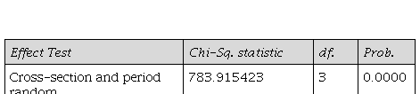 En la Tabla 1 se presenta el resultado con una probabilidad de sección transversal y de tiempo de 0.0000. Este valor indica que se rechaza la hipótesis nula, por lo tanto, el mejor modelo es efectos fijos.