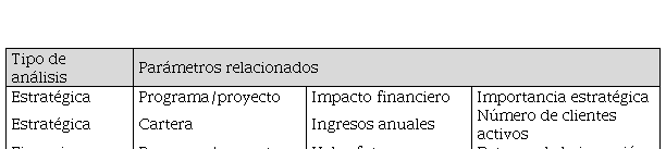 Este paso se refiere a la definición de criterios de evaluación y priorización de posibles proyectos y programas a integrar en la cartera. Según el MCTIC (2020), las medidas más comunes son las métricas financieras, los análisis de beneficios y una evaluación multicriterio. Sin embargo, la definición de estos criterios depende del segmento de actividad de la empresa y de su estructura funcional.