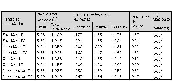 Tal como se puede verificar en las Tablas 1 y 2, la distribución de los datos para cada una de las variables de estudio no es uniforme. De esta manera, se confirma el uso del estadístico de Wilcoxon con el objetivo de poder comparar las muestras relacionadas.
