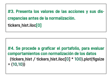 La normalización de datos en el ámbito de las inversiones bursátiles es un proceso crítico que tiene un impacto sustancial en la toma de decisiones de inversión. Este proceso implica ajustar valores de distintos parámetros financieros a una escala común, eliminando así las distorsiones causadas por variaciones en magnitudes, unidades o rangos. La importancia de la normalización radica en su capacidad para proporcionar una comparación precisa y significativa entre diferentes activos financieros. Esto es esencial para identificar tendencias, patrones y correlaciones ocultas que no son aparentes en los datos brutos. Además, la normalización facilita la aplicación de algoritmos de análisis técnico y modelos predictivos, mejorando la precisión de las predicciones y estrategias de inversión. Para este proceso se ejecutó el siguiente código: