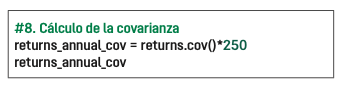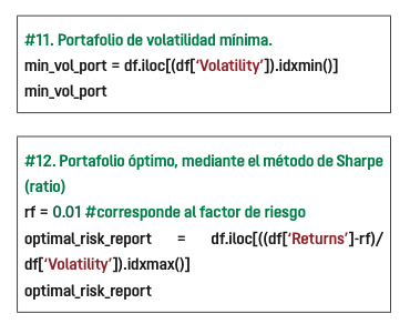 . Este proceso resulta en una serie de carteras eficientes adaptadas a diferentes niveles de riesgo. Gráficamente, se representa como una curva en la que cada punto refleja una combinación eficiente de riesgo y rendimiento. A continuación, se presenta el algoritmo utilizado.