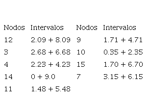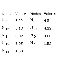 Tabla 7. Grados de indeterminación (i) sumado a cada nodo