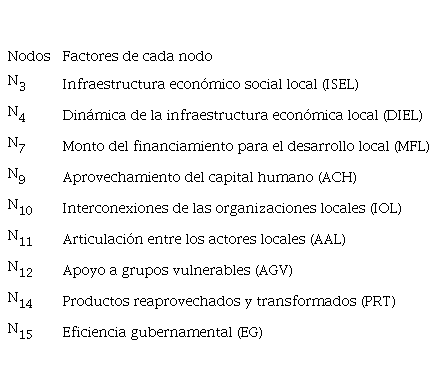 A continuación, se desarrolló la ponderación de los factores a partir de los valores dados en la comparación apareada lo que permitió determinar el nivel de interrelación de cada factor, utilizando la herramienta Mental Modeler disponible en el sitio web http://www.mentalmodeler.org/., para elegir aquellos con mayor peso en los valores del grado de centralidad, como se muestra en la Tabla 4.