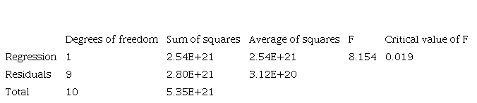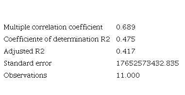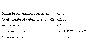 According to what is shown in Table 6, it is observed that the multiple correlation coefficient is 0.689, which means that the variable number of procedures required to open a company depends on 68.9 % of the economic growth represented in PPP GDP. A p-value of 0.122 and an R2 of 0.24 are presented for the variable time in days of opening a company. These results do not support the significance of the correlation with economic growth, leading to the rejection of the initial hypothesis. This is shown in Table 7: