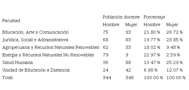 Tabla 1. Distribución poblacional de docente por género