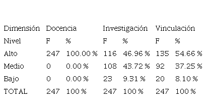 Nivel del desempeño laboral de los docentes de la Universidad Nacional de Loja en la docencia, la investigación y la vinculación