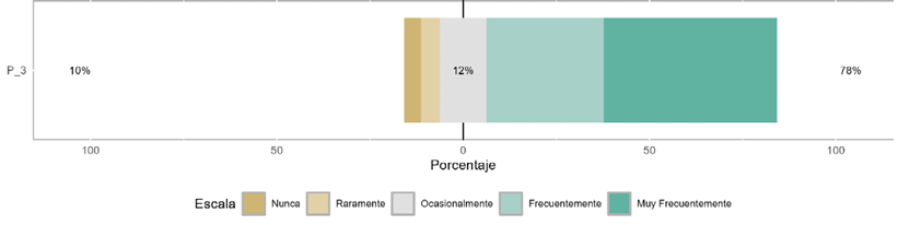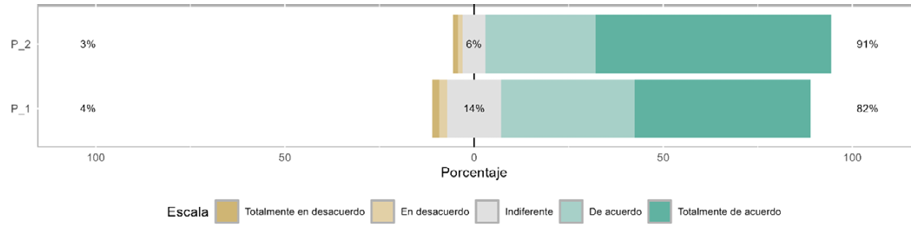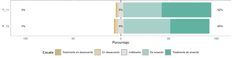 A nivel de satisfacción de los usuarios (como se ve en la figura 8), se presenta una alta aceptación en el manejo de las plataformas digitales (P_11) y se sienten satisfechos con los servicios que se ofertan en las plataformas digitales (P_12).