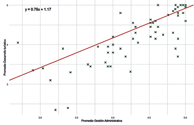Figura 1. Análisis de correlación entre gestión administrativa y desarrollo turístico
