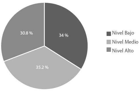 Respecto al compromiso organizacional, en la figura 2 los resultados revelan una distribución similar, con la mayoría de los participantes en el nivel medio (35.2 %), seguido por el nivel bajo (34 %) y finalmente el nivel alto (30.8 %).