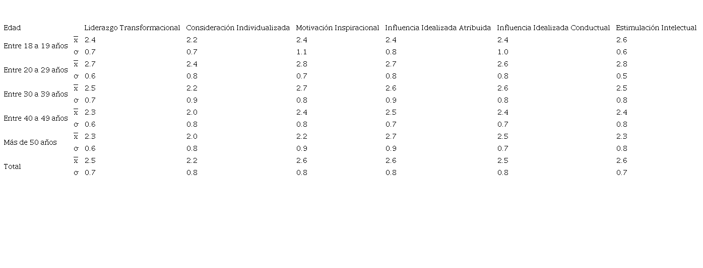 Tabla 3. Liderazgo transformacional por rangos de edad