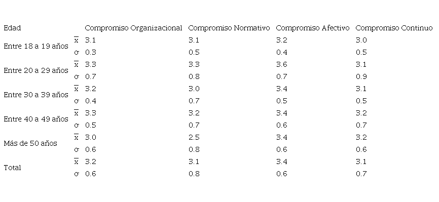 Tabla 4. Compromiso organizacional por rangos de edad