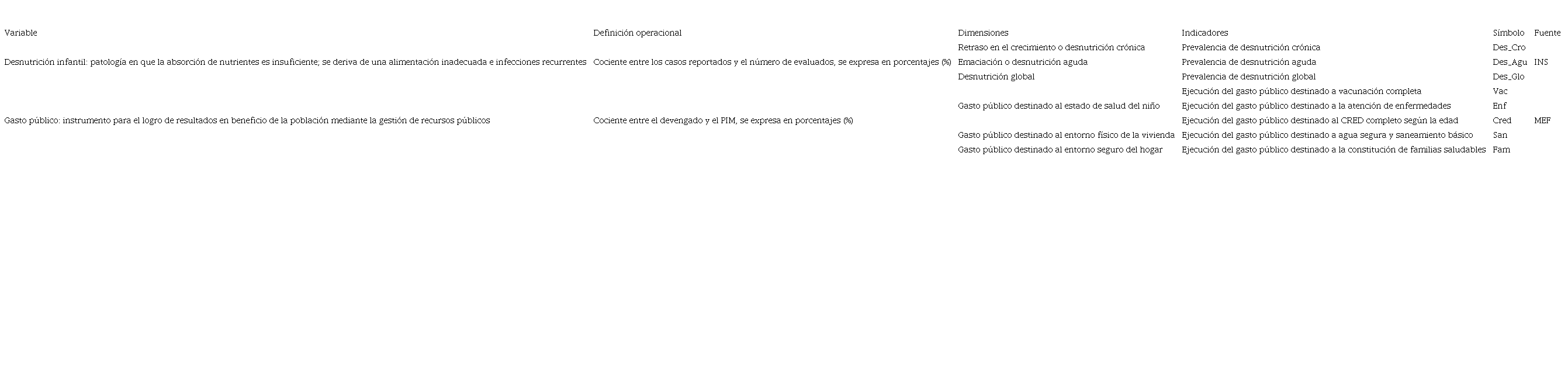 El estudio tiene por objetivo determinar la influencia del gasto público sobre la desnutrición infantil en Perú durante el periodo 2012-2024, centrando el análisis en las dimensiones de estado de salud del niño, el entorno físico de la vivienda y el entorno seguro del hogar.