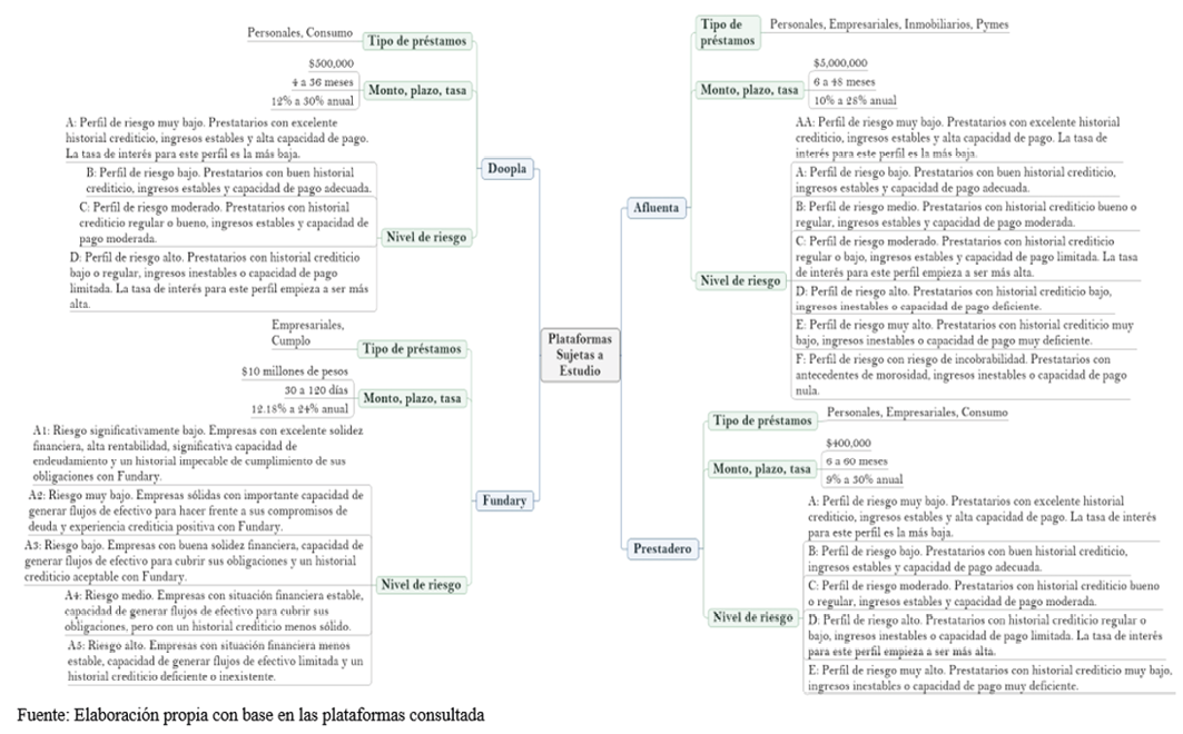 El análisis de las plataformas de financiamiento colectivo sujetas a estudio en el presente trabajo (Afluenta, Prestadero, Doopla y Fundary), es esencial para comprender su importancia en el contexto financiero de México, ya que estas plataformas han facilitado préstamos por más de $60 millones de dólares, beneficiando a miles de individuos y pequeñas empresas. Afluenta ha otorgado más de $30 millones, Prestadero más de $15 millones, Doopla más de $10 millones y Fundary $5 millones en tan solo dos años (Afluenta, 2022; Prestadero, 2023; Doopla, 2023; y Fundary, 2023). Estos datos resaltan el potencial del crowdfunding como una herramienta para promover la inclusión financiera, el crecimiento económico y la democratización del acceso al capital. Estas plataformas representan modelos innovadores en el ámbito financiero que facilitan el acceso al crédito para sectores tradicionalmente marginados y fomentan la competencia y eficiencia en el sector financiero.