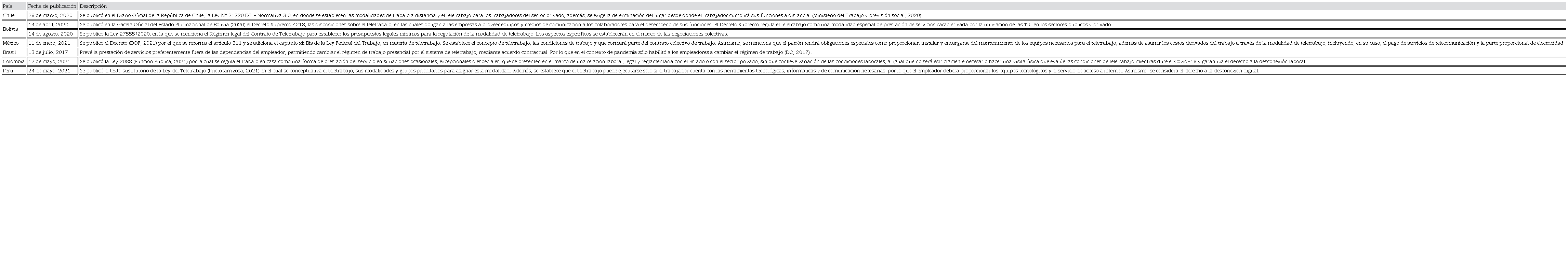 Ante un incremento en la implementación de la modalidad del trabajo remoto a nivel mundial, diversos países formularon regulaciones con la intención de proteger al empleado; en el caso de América Latina, tenemos los siguientes ejemplos: