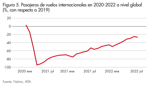 Por último, la pandemia de COVID-19 y, en particular, las políticas chinas de «COVID cero», que han durado tres años, han provocado una caída en picado de los contactos presenciales, no solo con Estados Unidos, sino también con el resto del mundo. Debido a las restricciones a la movilidad introducidas por el Gobierno chino, el número de vuelos internacionales se desplomó en 2020. Las restricciones mundiales a la movilidad también contribuyeron a la disminución de los vuelos (véase la figura 5). Aunque en la actualidad China ha reabierto totalmente su economía, abandonando la política de «COVID cero», el país ha instrumentalizado de alguna manera la concesión de visados para viajar y otros tipos de permisos, al redirigir a sus ciudadanos hacia países alineados en vez de a Estados Unidos.