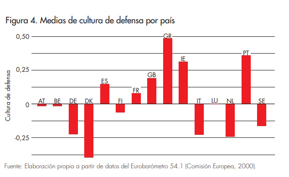 La investigación sobre la existencia de una cultura europea común o convergente en materia militar y de seguridad entre los estados miembros de la Unión Europea (UE) disfruta de un amplio desarrollo. Ello lo demuestran los debates acerca de una posible «identidad europea de seguridad y defensa»[1], una cultura europea de seguridad, o los referentes a la politización de la Política Común de Seguridad y Defensa (PCSD)[2]. En este marco, la premisa de este artículo es la inexistencia de una cultura europea común de defensa (Tardy, 2007). Dicha cultura aludiría a la actitud de las sociedades hacia el uso de la fuerza militar, las fuerzas armadas y la política de defensa, lo que constituiría un factor significativo en la configuración y desarrollo de una «defensa europea». Concebimos este concepto dentro del marco teórico de la cultura política (Almond y Verba, 1965). De manera preliminar, entendemos por cultura (política) de defensa los conocimientos, convicciones, valores y prácticas que guían a la ciudadanía a la hora de manifestar sus posturas sobre cuestiones relacionadas con la defensa, expresándose en diversos comportamientos respecto a las políticas de defensa implementadas por los poderes públicos, ya sea mediante su aprobación o rechazo (Bueno, 2016: 47). Sobre la construcción conceptual y la validación empírica de esta idea, a continuación se señalarán diversas críticas.