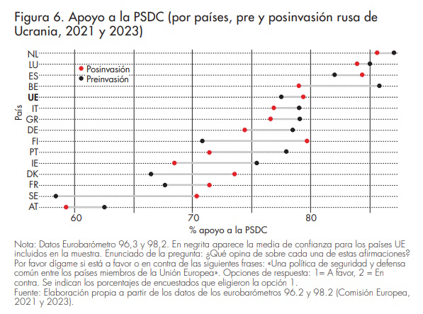 2) Apoyo a la PCSD: indicativo del componente evaluativo que examina el respaldo público a las iniciativas de seguridad conjunta en la UE.