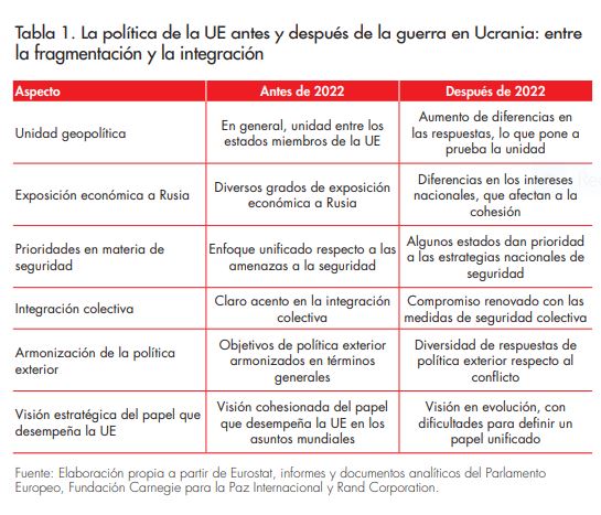 Respecto a las diferencias de intereses entre los estados miembros tras el estallido de la guerra, los países con fuertes lazos económicos con Rusia, como Austria o Italia, darían prioridad al mantenimiento de las relaciones comerciales; por el contrario, los estados bálticos y de Europa del Este abogarían por la aplicación de estrictas sanciones económicas contra Rusia por motivos históricos de preocupación en materia de seguridad, por lo que presionarían para aumentar la presencia de la OTAN y responder con contundencia a la agresión rusa (Marshall Center, 2019). Por su parte, los estados de Europa Occidental se inclinarían por soluciones diplomáticas, mientras que los que dependen en gran medida de la energía rusa procederían con cautela mientras transitan hacia las fuentes renovables. Además, los países próximos desde el punto de vista geográfico priorizarían la gestión de la afluencia de personas refugiadas, marcando su postura sobre las políticas migratorias del conjunto de la UE. Asimismo, los alineamientos geopolíticos de los estados miembros también varían: algunos prefieren estrechar lazos con la OTAN y Estados Unidos, mientras que otros aplican políticas exteriores más independientes (Mbah y Wasum, 2022; Sturm, 2022). Estas diferencias de enfoques complican los esfuerzos por plantear una respuesta de la UE cohesionada a los retos geopolíticos derivados de la guerra de Ucrania.