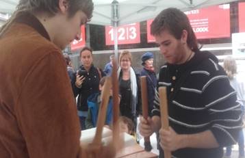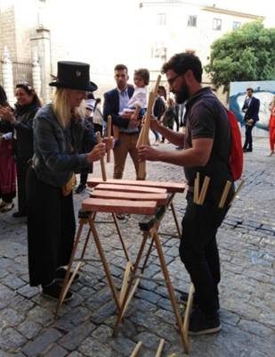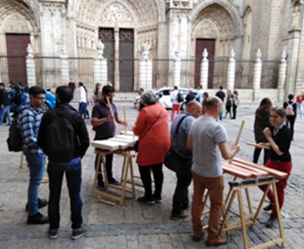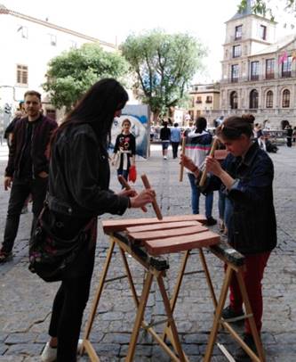 La posibilidad de llevar txalapartaris para este evento fue prácticamente imposible por lo que nos dejaba con más dificultades de exteriorizar nuestro proyecto. De todos modos, pudimos dar en Madrid con dos aficionados a la música que habían tenido relación con la cultura vasca y la fundamentación de este instrumento por lo que sabían tocarlo. Con buena iniciativa aceptaron a trasladarse a Toledo para intervenir como ayudantes para hacer partícipe a la gente.