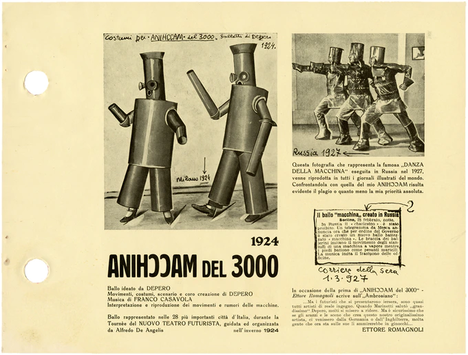 En 1928 cuando viajó por primera vez a Nueva York Depero quedó absolutamente fascinado con la ciudad puesto que simbolizaba todo aquello que había preconizado la vanguardia italiana. A este respecto, ideó un volumen parolibero y sonoro, New York- Film vissuto, que incluiría poemas sobre la imagen de Nueva York y recogería en dos discos las grabaciones de los ruidos de la metrópoli, pero no se llegó a realizar por falta de recursos.