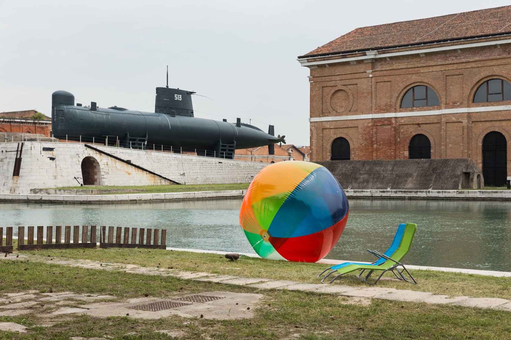 En un sentido fenomenológico, nos encontramos ante una escena en la que el estado de descanso vacacional, de ocio turístico colectivo, queda suspendido en el tiempo. No importa lo que ocurre al exterior del pabellón, al otro lado de sus ventanas. El escenario construido y sus temporales habitantes se nos muestran de igual modo si el día, en la vida real, es luminoso u oscuro, si hace frío o calor; tampoco importa la actividad que se despliega más allá de los límites del Arsenale Marina Militare. En este contexto, el término Marina del emplazamiento, incorporado al título, al tiempo que ancla la performance al lugar en el que sucede, es resonante para con el género pictórico de la marina, reforzando así también tanto la adscripción artística de la pieza como su carácter de imagen. Si nos ceñimos únicamente a dicha imagen, puede afirmarse que estamos ante una especie de paraíso. La escena recoge el ideal de descanso inconsecuente, desentendido de todo cuanto no sea placer —individual, aunque conjunto— o bienestar personal. Así la playa permanece, del mismo modo que en el imaginario social, como un tótem ultra deseado y alcanzable de forma efímera. Sucede que es precisamente en su inasequibilidad donde estriba su potencialidad de sometimiento, pues el deseo hacia el descanso ocioso procede del estado de insatisfacción previo. Así, nuestra capacidad para alcanzar un reposo sofisticado no solo será un indicador de nuestro valor en la escala social sino que aportará sentido a nuestras insatisfacciones y renuncias.