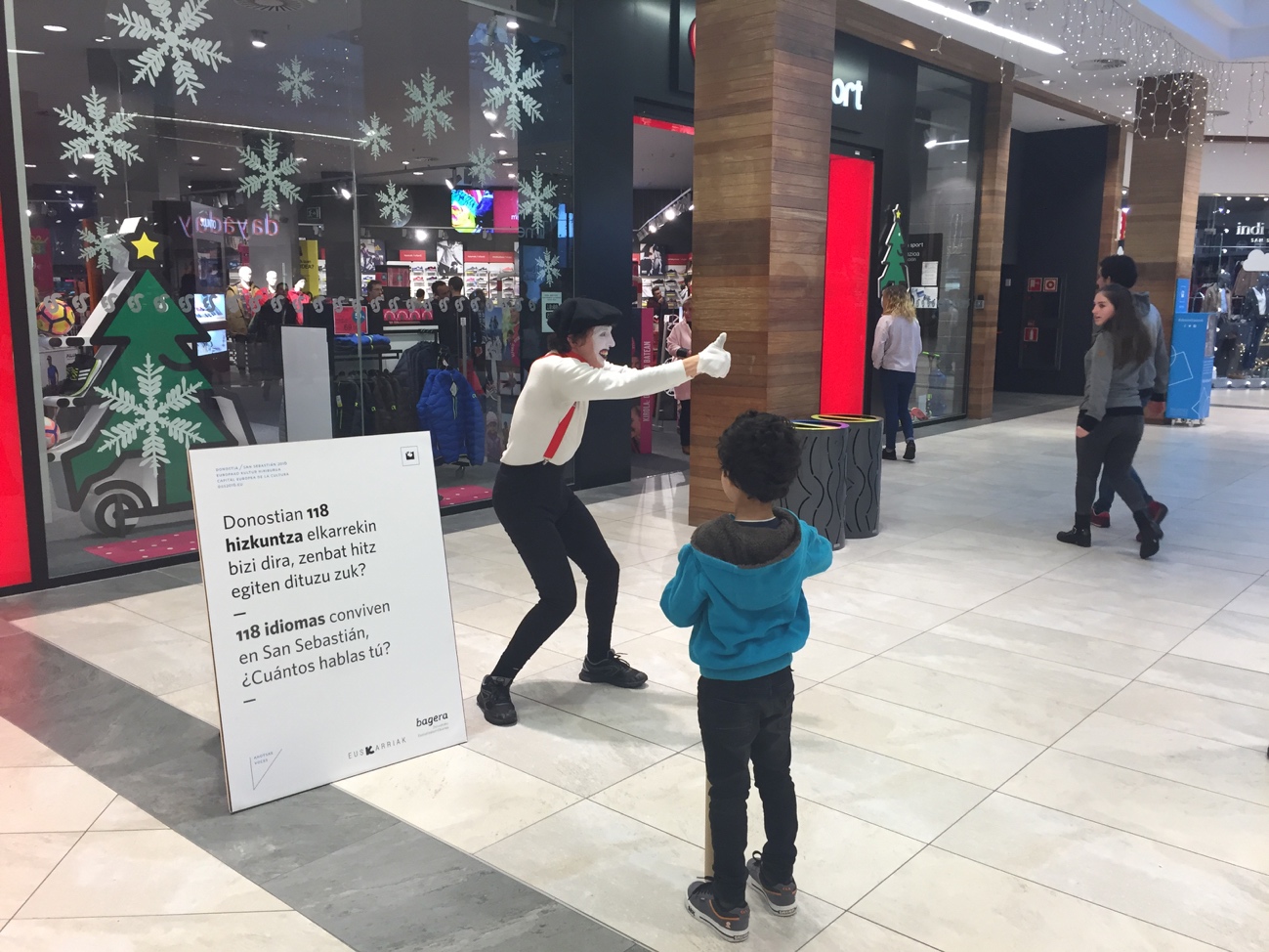 Non eta noiz antzeztu zen. Merkataritza-zentroko lau toki ezberdinetan antzeztu zen 2016ko abenduaren 23an.