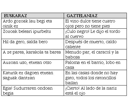 Euskastellanoa antzezlanerako aukeratu ziren esaera zaharrak