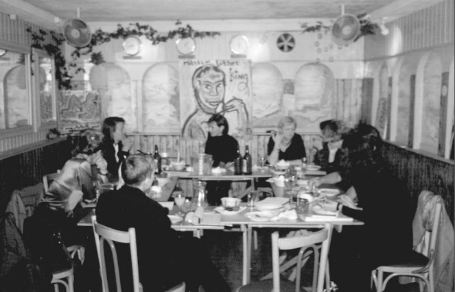 Cortesía de: Kathy Rae HuffmanEn 1996, Eva Wohlgemuthh, artista conceptual austriaca, y Kathy Rae Huffman, comisaria de arte digital y productora norteamericana, iniciaron Faces settings, un proyecto de co-cooking y comunicación en Internet basado en una investigación centrada en la comunicación de las mujeres en línea y en la vida real. La idea surgió después de compartir experiencias personales relacionadas con la comunicación, el origen cultural y el género durante su anterior proyecto de Internet titulado Siberian deal, una obra de arte basada en un diario cibernético. Tras esto, decidieron trabajar juntas en un proyecto dedicado a conectar a las mujeres artistas a través de redes de comunicación (Huffman 2003, 401). Ambas ya habían organizado varias cenas con otras artistas femeninas y también habían impartido talleres de formación de artistas para la creación de sitios web (Huffman 2018). Face settings fue una serie de cenas-espectáculos desarrollados entre 1996 y 1998 entre doce grupos de mujeres ubicados en cinco regiones diferentes, junto con entrevistas y otros métodos de investigación que Huffman y Wohlgemuth realizaron colectivamente a través de sus redes profesionales durante los eventos de arte digital. Combinando ‘mujeres, cocina y comunicación’, diseñaron una serie de eventos que conectaron las actividades locales con la plataforma virtual, vinculando y promoviendo el trabajo de las integrantes en línea (Huffman 2003, 401). El objetivo era construir una red basada en: comunicación en línea (grupos definidos en cada lugar), representación en línea (el sitio web, vinculando los eventos locales reales entre los grupos regionales), eventos de instalación en vivo (cenas locales en grupos de doce, creando un sentimiento de encuentro vocacional y familiar), artefactos (intercambio de recompensas), y publicaciones (un catálogo recopilatorio de recetas de las cenas), entre otros.