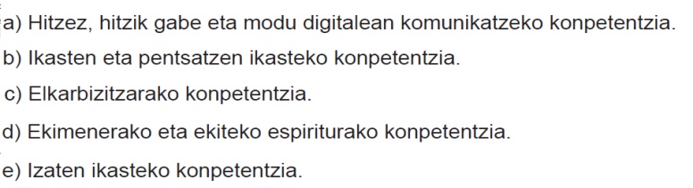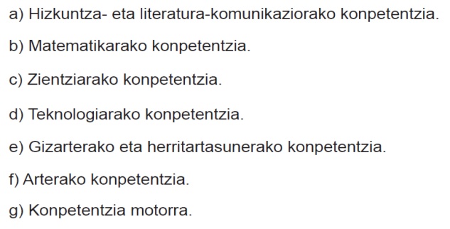 Euskal Herriko Agintaritza Aldizkarian argitaratutako 2016/141 dekretuan horrela definitzen da Arterako Konpetentzia Oinarrizko Hezkuntzan (Irudia 3):