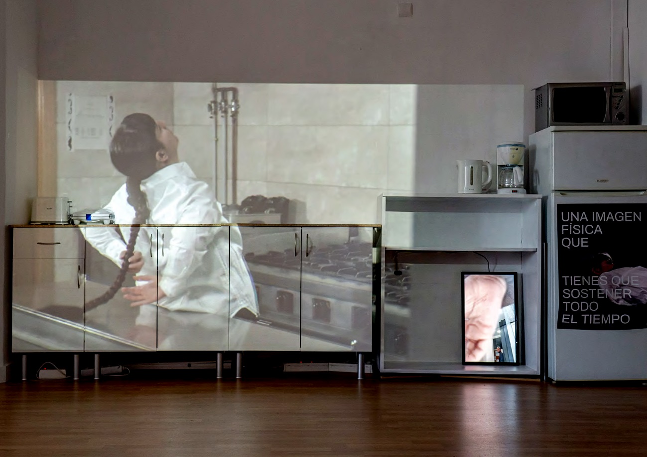 María Alcaide, Dark Kitchen, videoperformance, color y sonido, 16’ 37’’, Espacio de creación e investigación artística Eystudio, Madrid, 2021.
