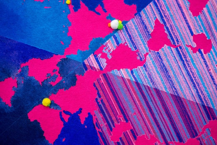 Abstract: In this paper we approach the research and creation of artistic cartographies as a therapeutic process and as a visual communication medium, but also as an effective educational methodology to reflect on and understand the reality, both individual and collective. For this purpose, we have carried out a study and analysis of three contemporary art projects in which we have worked, through drawing and painting practice, with textile techniques and materials such as: Mappa (Map) by Alighiero e Boetti, Tirar del hilo (Pulling the thread) by Sonia Navarro and Guía psycogeográfica (Psycogeographic guide) of the self-authored. A selection of artistic cartographies that, as references (artistic, conceptual and technical), help us to understand and learn the symbolic connotations of maps, colors, shapes and materials used in these works of art, which also generate knowledge (artistic and intellectual) with a strong reflective and critical sense.