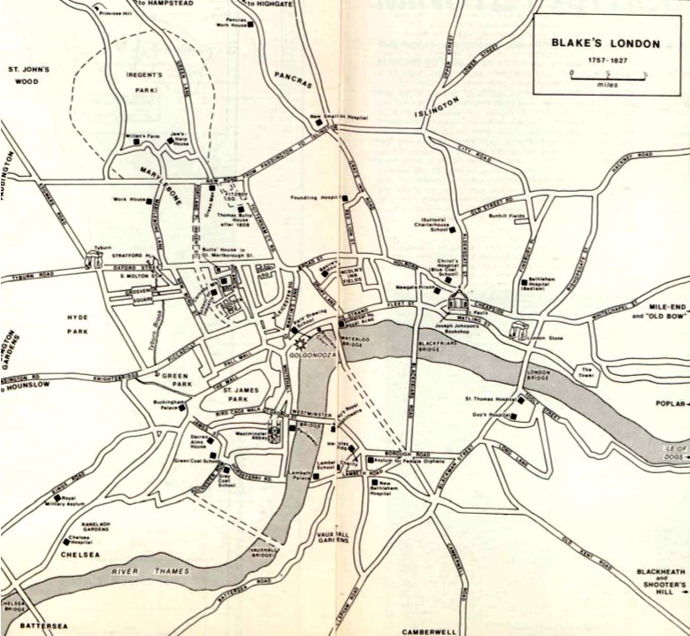 Mapa del Londres de Blake por Karen McHaney y Mary Lynn Johnson-Grant (1977)