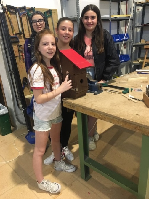 Alumnas de un Centro escolar de Fuentes de Ebro (Zaragoza) que, junto con el docente y tras un trabajo previo sobre el prototipo de diseño trabajaron en una adaptación a su contexto escolar, así cómo en la intervención plástica.