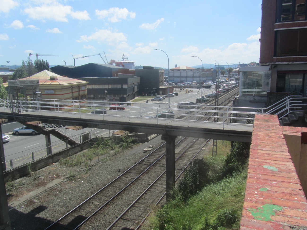 Vista del Puerto de Bilbao desde Itsasalde kalea (núm. 18), y pasarela de acceso restringido a sus instalaciones (2019), (contrastar con la figura 3).