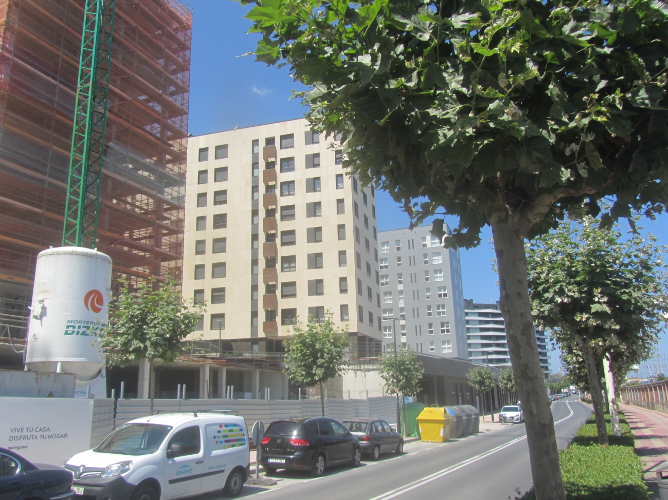 Bloques en construcción con anunciadas "espléndidas vistas al mar" sobre el borde marítimo-portuario (Iparragirre etorbidea, 2020).