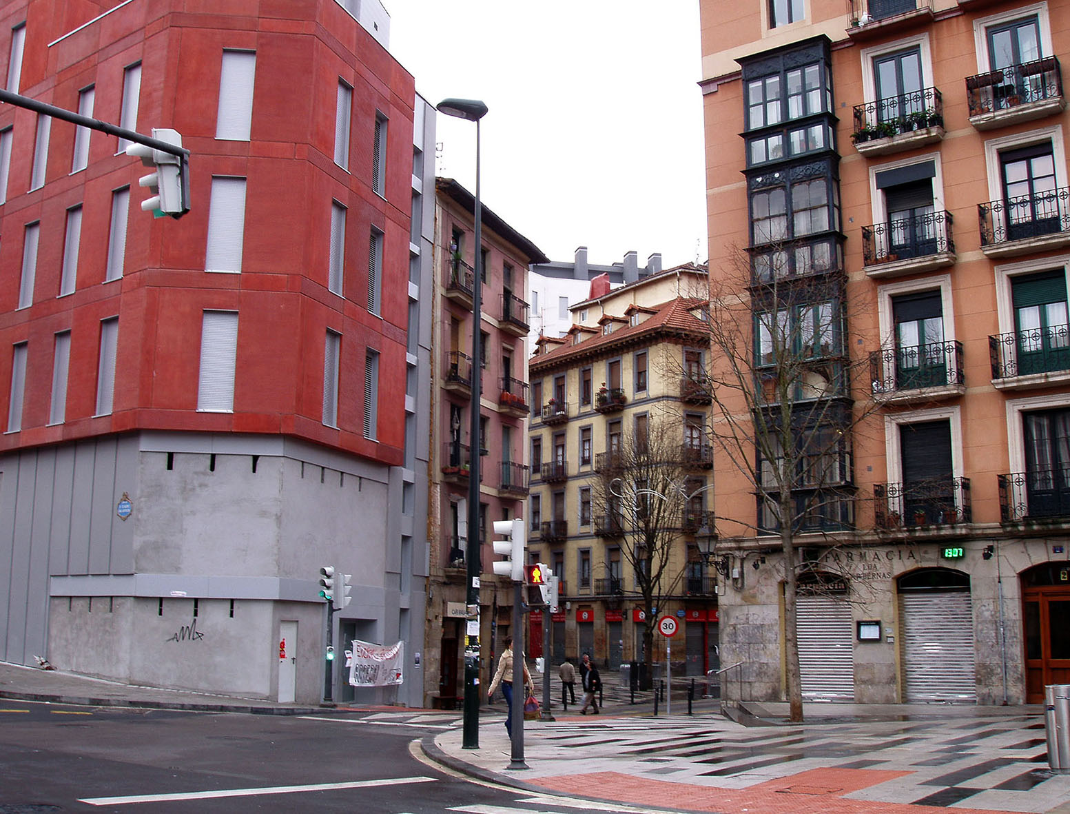 Encrucijada de centro histórico transformada por una ‘ruptura’ del tejido con nuevos edificios.