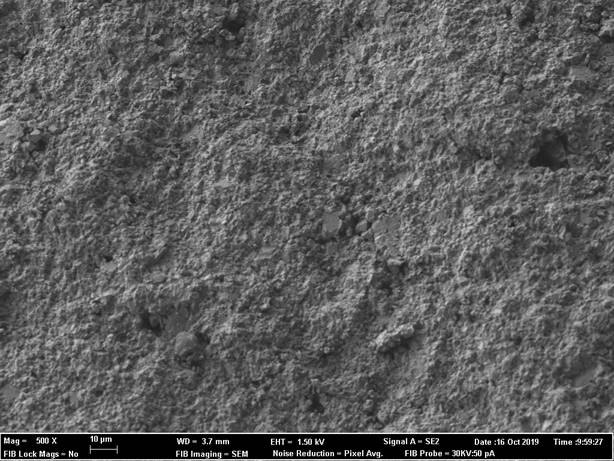 Superficie de la piedra a 500 aumentos (FESEM), 2019. Servicio de Microscopia electrónica, UPV