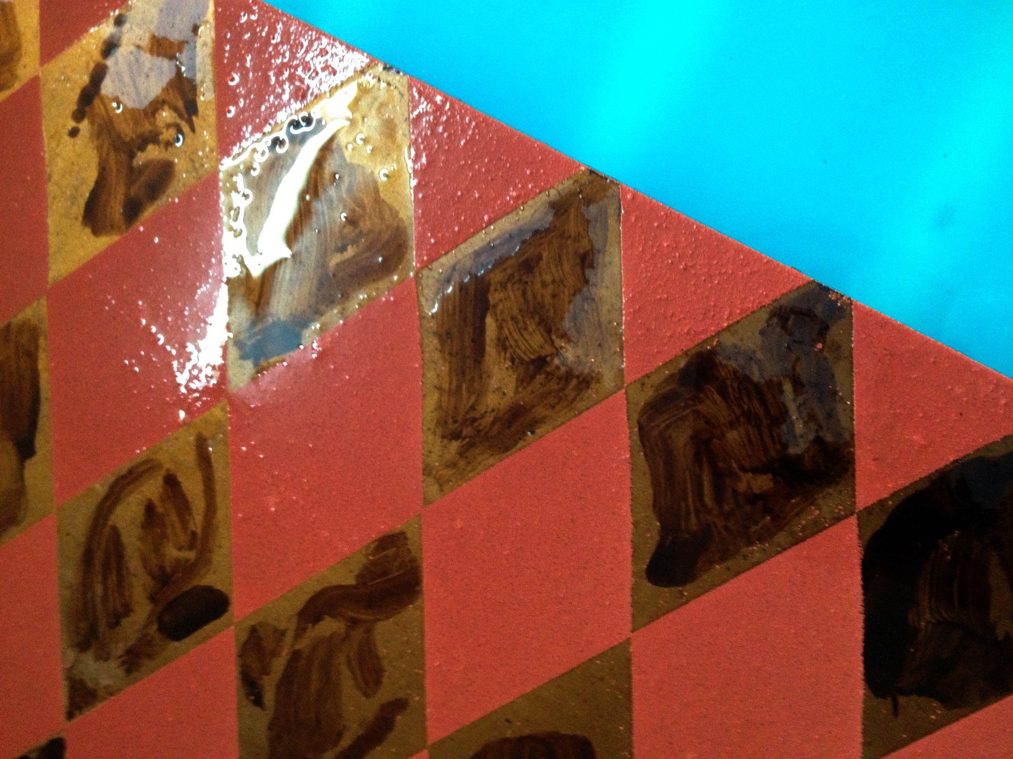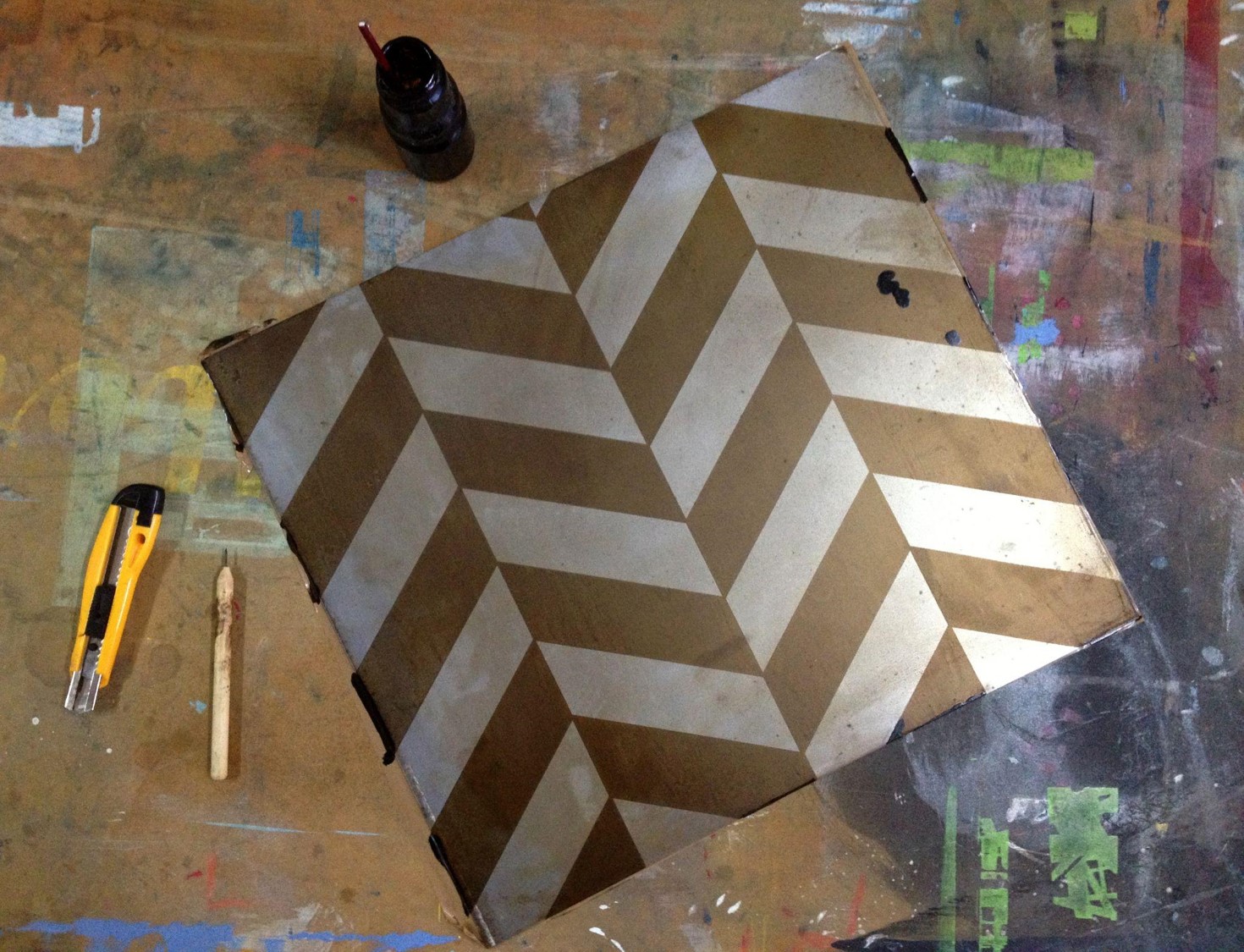 Ejemplo de plancha de acero con el barniz de reserva estampado