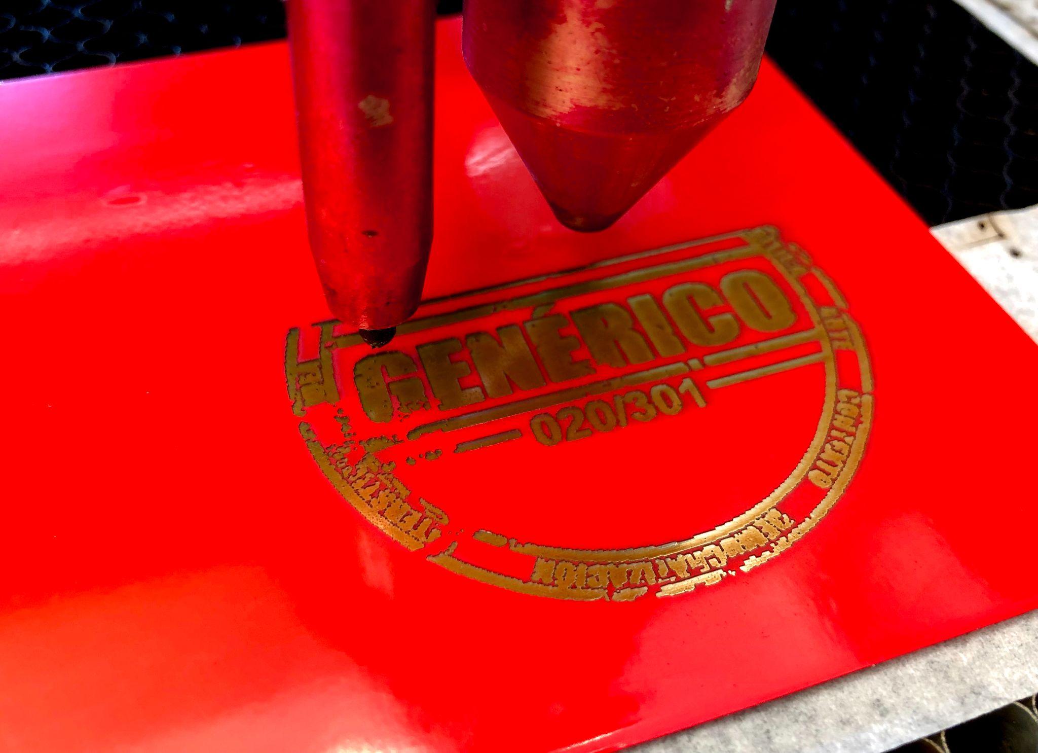 Mediante un haz de dióxido de carbono (CO2), concentrado y dirigido a través de una lente y un conjunto de espejos que se encuentran en el interior de la cortadora, podemos incidir sobre el vinilo adherido a la matriz y calentarlo con la potencia y velocidad necesarias para atravesarlo y así dejar el metal listo para su posterior mordida en el ácido.